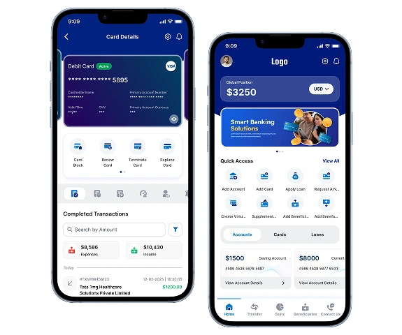 - Comprehensive key features for end-users: Account Management (view balances, transaction history, account statements) Bill Payments, Peer-to-Peer Transfers, Card Management (add, block/unblock cards, view transactions), Multi-factor Authentication (MFA) and Biometric Login (fingerprint, face recognition), Real-time Notifications & Alerts